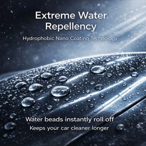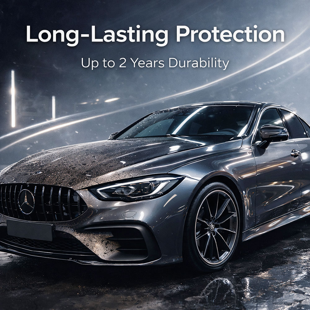 Our coating creates a strong water-repellent surface, allowing water to bead and roll off easily. This helps reduce dirt, stains, and watermarks — keeping your car cleaner for longer.